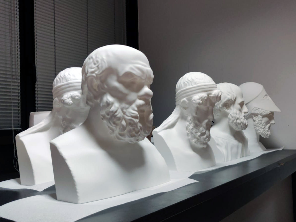 La realizzazione dei busti dei filosofi 3D, la cui altezza misura circa 50cm, è stata realizzata in stampa 3D, con una pipeline interamente digitale (credit: Protocube Reply)
